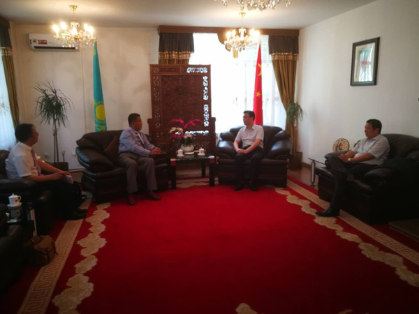 当天,齐国华主任还拜访了中国驻阿拉木图总领事馆,张伟总领事热烈欢迎了齐国华一行。