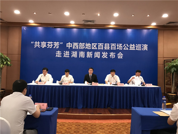 【香港商报网讯】记者何雯报道:23日上午,记者从“共享芬芳”中西部地区百县百场公益巡演走进湖南新闻发布会上获悉,“共享芬芳”巡演湖南行活动将于6月25日到7月1日在湖南岳阳市、临湘市、南县、益阳市巡演4场。