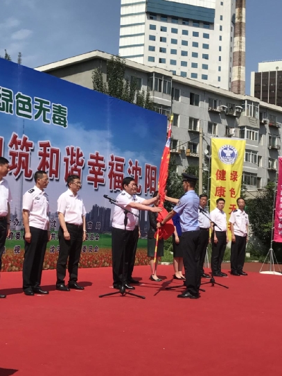 杨建军副市长向沈阳市“全国禁毒示范城市禁毒宣传队”授旗