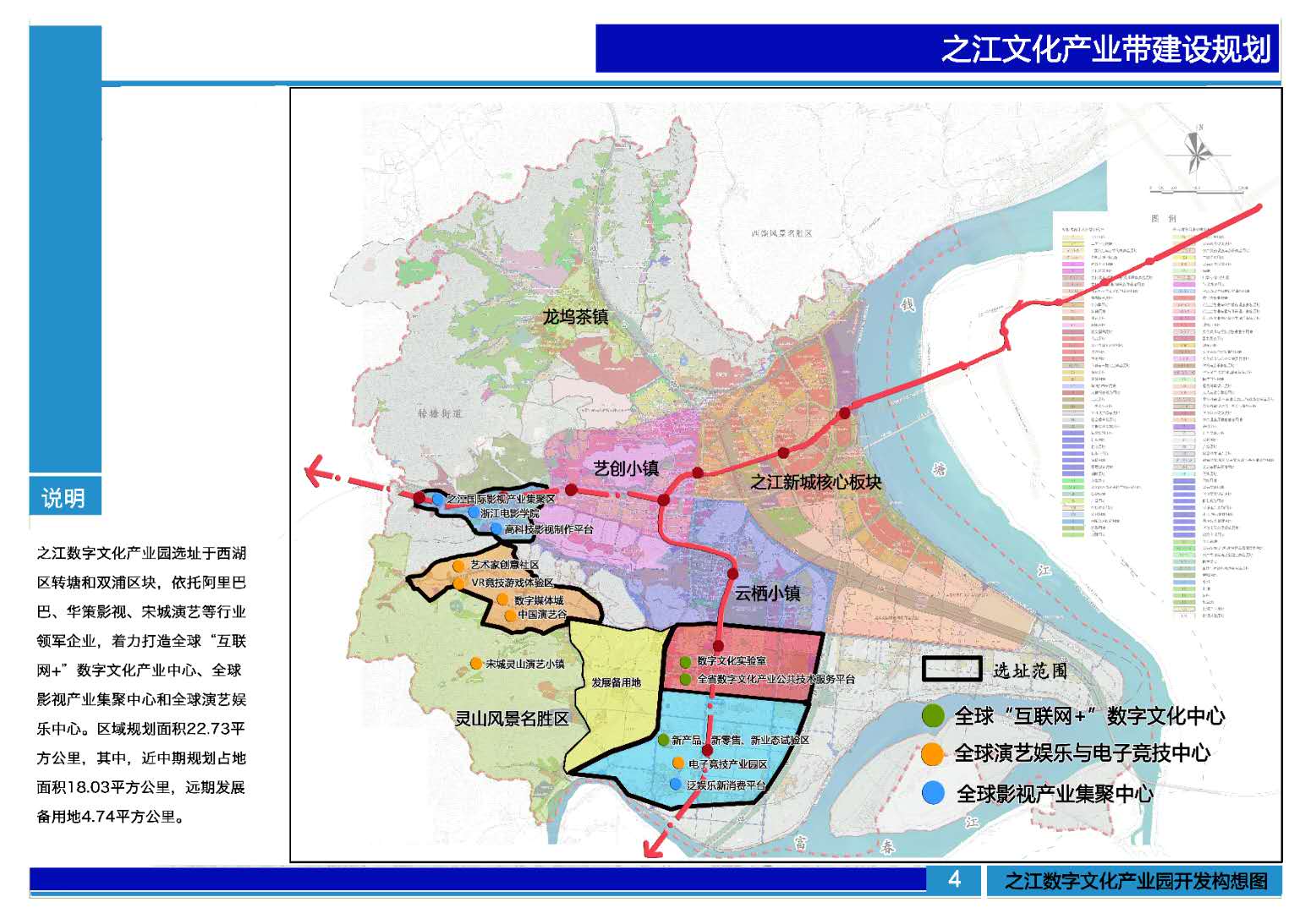 据了解,之江文化产业带建设的总体定位是打造“一带四基地”,即以之江文化产业带为空间形态,集成数字文化产业基地、影视产业基地、艺术创作产业基地、动漫游戏产业基地等产业功能,打造成为浙江省文化产业发展的重要增长带和参与省际乃至国际文化产业竞争的重大平台。
