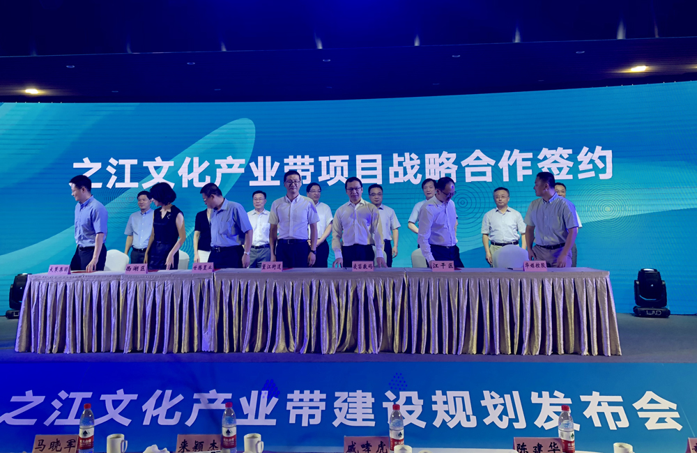 浙江省委宣传部常务副部长来颖杰在会上表示,“一带”代表之江文化产业带,“一核”指之江发展核,“五级”,即滨江(白马湖)、奥体(湘湖)、上城、九乔、富春五大发展极,是之江文化产业带沿江扩展的重要支撑点和发展增长极。同时,整合沿江重大平台和重大项目,串点成面,围绕四大基地建设,谋划建设具有全国乃至国际影响力的11个特色文化产业组团。