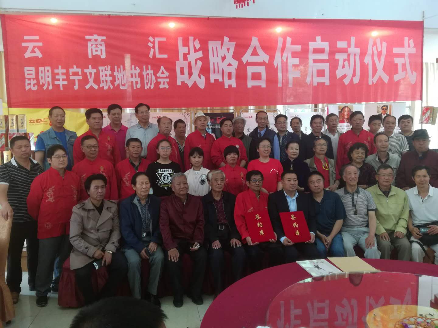 签约仪式上书画家合影留念。