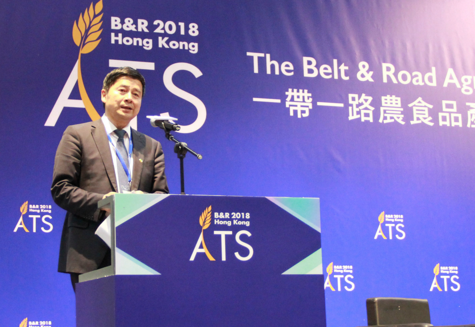 【香港商报网讯】记者付彦华 实习记者张晓磊报道: 27日下午,首届香港一带一路农食品产业及贸易高峰论坛在香港亚洲国际博览馆举行,来自格鲁吉亚、阿尔巴尼亚、立陶宛、柬埔寨、津巴布韦等35个国家和地区的政界、工商界人士汇聚一堂。就提高全球粮食安全与营养水准,推进农业可持续发展等话题进行智慧碰撞,共同探讨一带一路经贸合作新篇章。黑龙江省农垦总局党委委员、副巡视员、北大荒集团副总经理郭宝松在论坛上做了题为“携手同心创辉煌 合作共赢谱新篇”的精彩发言,博得了“一带一路”沿线国家各界人士的盛赞。