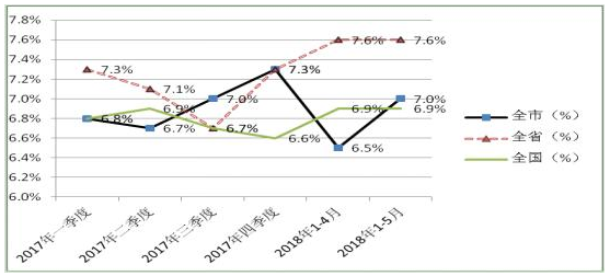从重点产业发展情况来看,1-5月,全市八大重点产业增加值占规模工业比重49.7%,比去年同期上升0.9个百分点。