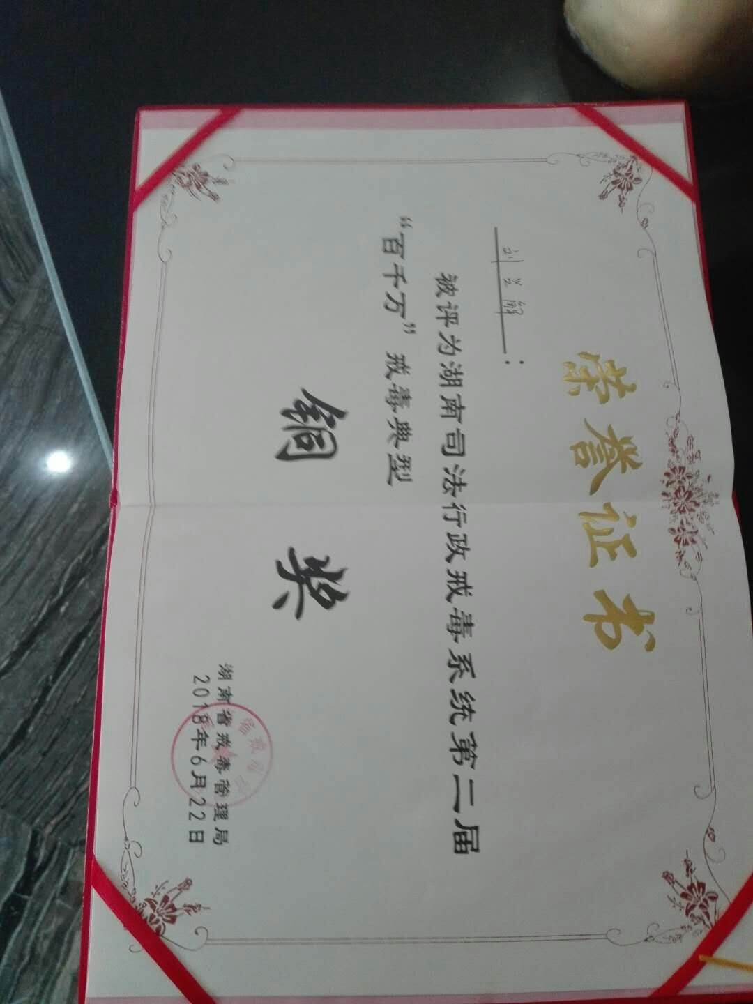 今年6月,刘兴解获评“湖南司法行政戒毒系统第二届百千万戒毒典型”铜奖。