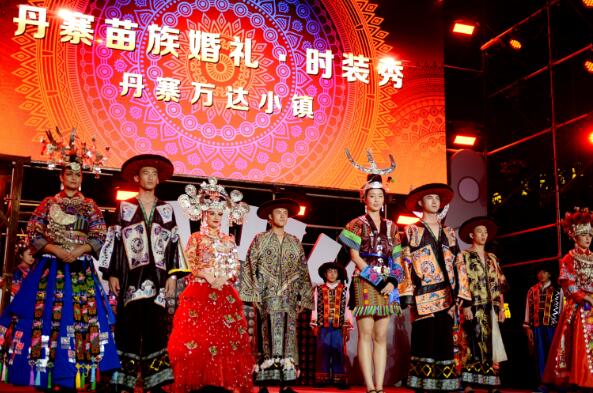 当天,除了专业的T台外,丹寨万达小镇主干道、吊桥和东湖一周都铺上总长3公里的红毯,可谓是“世界最长T台秀”。伴随各种极具民族特色的演艺活动,大批着苗族民族服装的专业表演者和小镇村民及游客,走T台,踏红毯,环东湖巡游。