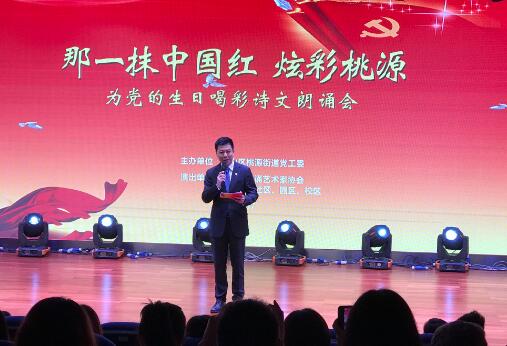 【香港商报网讯】记者黄凤鸣报道:7月2日下午,为庆祝中国共产党成立97周年,深圳南山区桃源街道党工委在桃源文体站举办了“那一抹中国红 炫彩桃源——为党的生日喝彩”诗文朗诵会,用经典诗文为党献上一份深深的敬意和祝福。