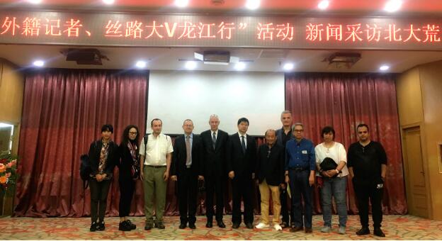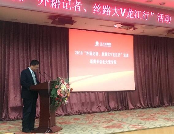 【香港商报网讯】实习记者张晓磊 报道 7月4日上午9时,2018“外籍记者、丝路大V龙江行”新闻采访北大荒专场发布会在北大荒国际饭店举行,会议由黑龙江省农垦总局商务局局长崔龙江主持,黑龙江省农垦总局党委委员、北大荒集团副总经理郭宝松出席会议,来自缅甸、沙特、罗马尼亚、乌克兰、菲律宾、塞尔维亚、印度尼西亚、泰国等8个国家的大V受邀参加此次活动,此行各国大V将在北大荒进行深度的参观、体验,即将参观北大荒博物馆、北大荒生态园、九三粮油工业集团及完达山乳业集团,了解北大荒现代化大农业的发展与成就。