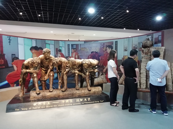 参观考察期间,“赵黑茶”一行很有兴趣地参观了湖南省茶叶博物馆、茶叶研究所、该集团茶叶品牌展厅,深有感触。陆羽《茶经》“六之饮”中有:“茶之为饮,发乎神农氏,闻于鲁周公。”“七之事”中又有:“《茶陵图经》云‘茶陵者,所谓陵谷生茶茗焉。’”这则典故,描述了神农氏与茶陵的关系,而茶陵县位于湖南省境内,由此可见,湖南对中国茶文化乃至世界茶文化有着重大贡献。湖南省茶叶博物馆对世界茶叶和中国茶叶产地的分布、中国茶业在世界茶业中的地位、中国茶业和湖南茶业的发展历史作了详细的描述,展示了以黑茶和红茶为代表的湖南茶的制作器具和制作工艺等。