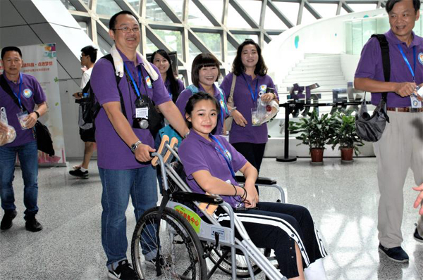 坐着轮椅的台湾新兴高中的学生林庭筠,7月1日在台湾啦啦操爵士舞比赛中获得个人冠军。后来受了伤,但是她十分珍惜这次参加夏令营的机会,即使坐轮椅也要来。