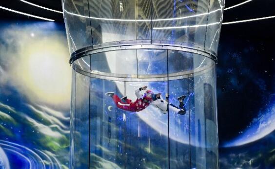 作为馆内最受欢迎的体验项目,室内跳伞(风洞)拥有5项发明专利,按照国际标准进行设计,采用立式全透明钢化玻璃结构,控制气流,形成风力作用,让游客从高空旋转漂移下坠,享受如小鸟般自由飞翔的非常体验。