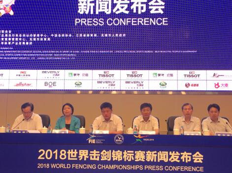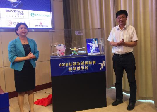 江苏省体育局副局长、2018世界击剑锦标赛组委会副主任刘彤,无锡市人民政府副市长、2018世界击剑锦标赛组委会副主任刘霞共同公布赛事logo、吉祥物和海报
