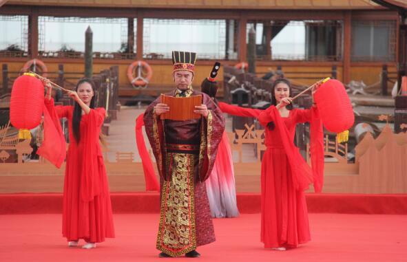 11日上午,郑和文化节七彩云南·古滇名城欢乐周率先启动。与往年不同的是,今年古滇名城欢乐周开幕式把舞台移至古滇艺海大码头水上舞台进行。以山水为景,以滇池为台,将舞台镶嵌至这一方古滇秀丽壮阔的美景之中。开幕式上,一名身着传统汉服的演员缓缓走向恢弘的古滇战船,伴随着嘹亮的号角和“起航”声,古滇战船缓缓驶出,生动再现了600多年前郑和下西洋的景象。