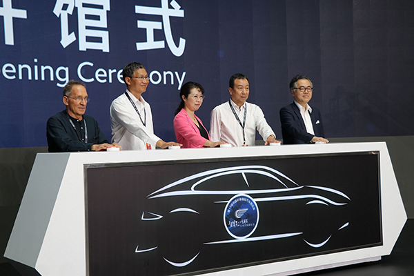 长春市人民政府副市长贾丽娜(中)与参会嘉宾共同启动开馆式