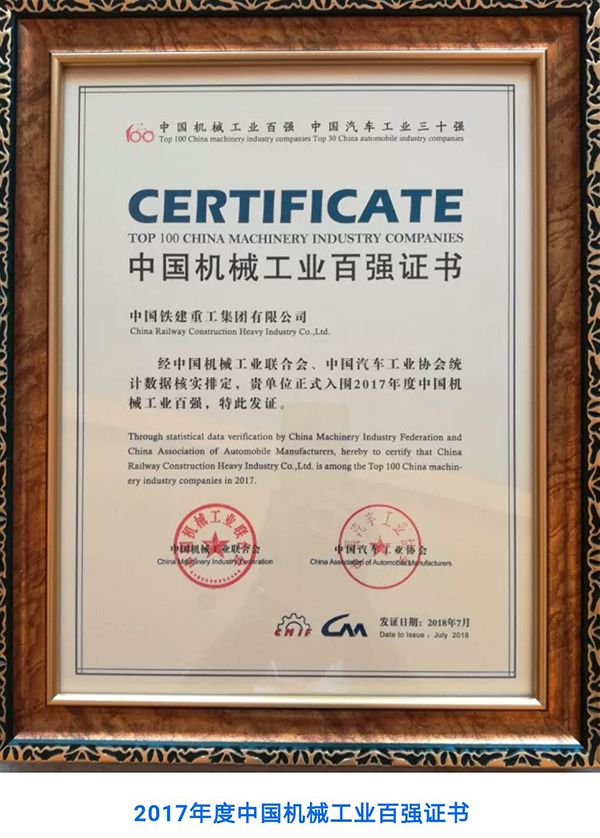 【香港商报网讯】记者 李银明 通讯员 麻成标报道:7月13日,由中国机械工业联合会、中国汽车工业协会主办的“中国机械工业百强企业、汽车工业三十强企业信息发布会”在山东临沂召开。会上发布了2017年度中国机械工业百强和汽车工业三十强企业名单。其中中国铁建重工集团在本届百强榜单中提升20名次,跃居至第38位,排名攀升幅度创本届榜单新高,这是铁建重工继今年强势跻身全球工程机械制造商50强第33位后,在中国机械工业百强榜上续写的又一个辉煌。