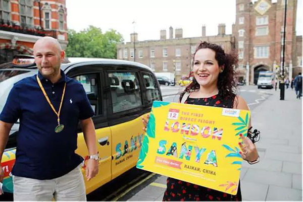 在所有进行广告投放的出租车中选择一辆幸运广告车,将乘坐该辆车的第8位幸运乘客Matt Curtis、第88位幸运乘客Lucy Lewendon和第188位幸运乘客Madeleine Penny,受邀出席推介会,分享自己参与活动的兴奋经历,并将整个活动过程拍摄下来、制作成宣传片。三位乘客在推介会现场获得由南方航空提供的伦敦往返三亚直航机票及海南五星级酒店套房的幸运大奖,也成为三亚=伦敦直航航线开通后的首批体验乘客。