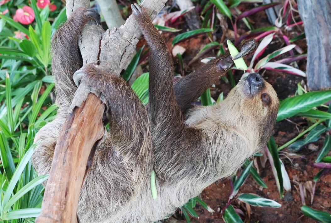 目前,三只来自南美洲的树懒经过检验隔离期今天正式对外亮相,与游客见面。