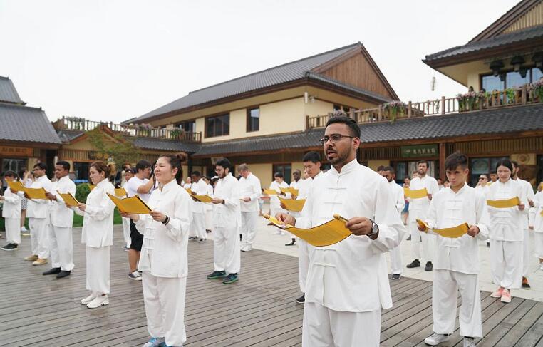 活动现场,国际大学生们穿上汉服,集体吟诵了中国古老的爱情诗篇《诗经·蒹葭》,同西安的小学生们一起完成了一副充满寓意的书法作品,还现场拜小老师学打太极拳。博大精深的中华文化和底蕴深厚的“诗经里”小镇让国际大学生们如痴如醉、流连忘返。