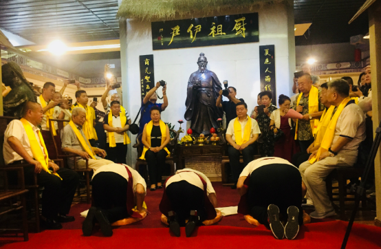 为有效利用伊尹厨祖这一宝贵的历史文化资源,弘扬发展中华传统餐饮食文化,保护传承传统拜师礼仪文化,特举办黑龙江名厨参拜厨祖伊尹大典,拜谒、纪念厨祖伊尹成为拜师仪式上的一大亮点。据了解,国家级非遗项目老汤精传承人王军将伊尹的铸铜之像竖立在哈尔滨三五非遗博览馆之后,黑龙江餐饮界每逢开张庆典、徒弟拜师等活动,都前来先敬拜厨祖。拜师与敬祖相结合,报本之心,思祖之情,是龙江所有餐饮人的共同心愿和情怀。