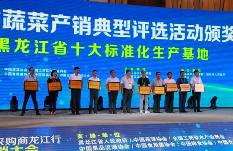 作为大会主办方之一,省农委借此契机开展了全省蔬菜产销典型评选活动,现场发布了十大标准化蔬菜生产基地、优秀蔬菜加工企业、最具影响力蔬菜品牌和蔬菜种植大王4个奖项评选结果。大庆宏福农业股份有限公司、大庆上仓农业集团有限公司、黑龙江省维多宝食品股份有限公司、黑龙江亮子奔腾生物科技有限公司、桦南县龙兴农业开发集团有限公司、绥化市北林区永安满族镇鑫诺瓜菜种植农民专业合作社、齐齐哈尔市梅里斯红星盈蔬菜小镇、哈尔滨永和菜业有限公司、哈尔滨中央红集团新农业科技发展有限公司、哈尔滨益助果蔬种植股份有限公司被授予黑龙江省十大标准化蔬菜生产基地称号。