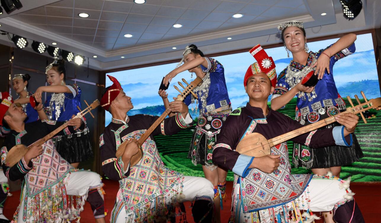 7月18日,在广东东莞市,演员们在表演舞蹈《茶园春色》。