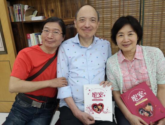黄灿(左)与《蜜室》书中男女主人公吴敏伦(中)、徐梅(右)