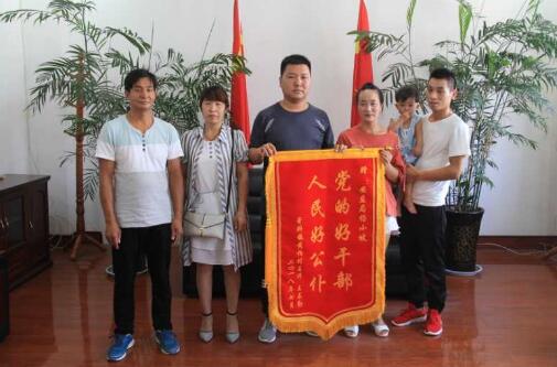【香港商报网讯】7月18日上午8时,河南省汝州市寄料镇黄柏村王洋、王书勤等兄妹四人特意到汝州市安全监管局,把一面写着“党的好干部 人民好公仆”的锦旗送给汝州市安全监管局扶贫干部杨小坡。感谢杨小坡对他们母亲田层的帮扶,更感谢杨小坡为一家人争取到了9万元保险理赔金。
