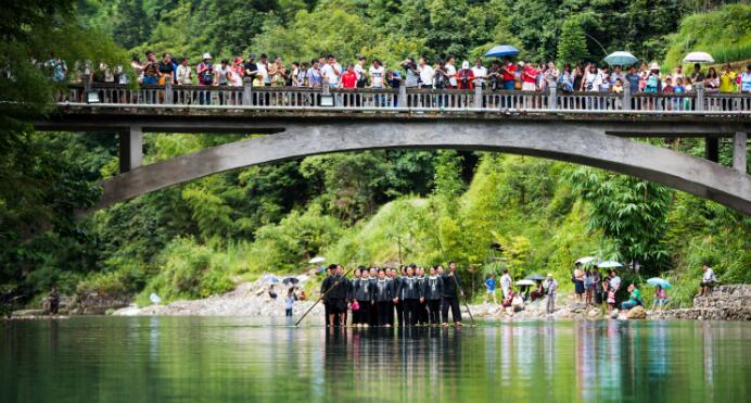 从江县加榜乡嬉水节壮族同胞在表演水上壮族大歌 吴德军 摄