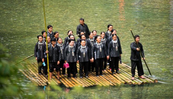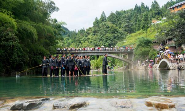 【香港商报网讯】通讯员 吴德军 报道:25日,贵州省从江县加榜乡下尧贵村迎来一年一度的嬉水节,当地壮族群众站在竹排上,边划竹排边唱壮族大歌,展示壮族非物质文化遗产魅力,歌声美醉了村民和游人。