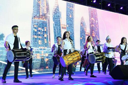 2018年东盟轮值主席国新加坡表演打击乐合奏节目《鼓悦飞腾》