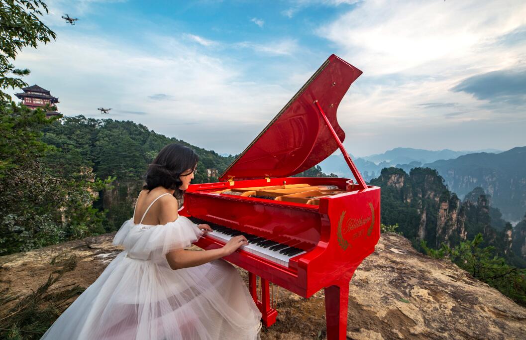【香港商报网讯】记者张思静 报道:青山作证,稻田传琴。8月5日上午,在湖南省张家界市武陵源风景名胜区“峰林之王”天子山御笔台上,著名钢琴家元杰在御笔台上弹奏名曲《我爱你,中国》,以此拉开2018黄龙音乐季的序幕。