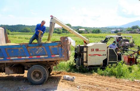【香港商报网讯】记者 唐勇平 通讯员 杨万里 陈斌 胡纯亮 报道: 8月6日,记者来到湖南省永州市零陵区菱角塘镇古江村时,零陵皓天农业开发有限公司董事长唐亚超正组织公司人员在收割今年的杂交水稻制种。
