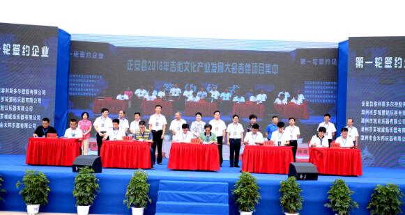 当天集中签约仪式上,来自加拿大、台湾、广州、深圳、惠州等24家吉他企业与正安吉他企业共签约24个项目,总投资达8.4个亿,涉及吉他乐器制造及配件。