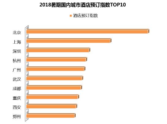 目的地方面,北京、上海、深圳、杭州、广州、武汉、成都、重庆、西安、郑州十个城市暑期酒店预订指数位居全国前十名,此外,厦门、三亚、昆明、大理、苏州等热门旅游城市的酒店预订指数排名靠前,当地酒店预订量明显受暑期旅游客流驱动。