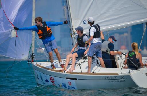 8月12日,国际名校帆船赛第一阶段的比赛继续进行。海上风力6-7节,相较昨日已有所提升。A组的比赛通过两轮激烈竞逐,临时排名首位的剑桥大学以两轮第一名、总积分4分的绝对优势锁定金组名额。莫斯科国立大学则继续将优势保持到最后。阿姆斯特丹大学拿到了本组最后一个晋级金组的名额。