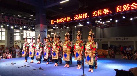 当天活动现场,来自苗族、布依族、瑶族、侗族等少数民族艺术家,为大家献上9个省级、国家级,以及世界级非遗节目表演。其中由大型民族乐器奏出的《反排木鼓舞》、《铜鼓十二调》等以厚重、沉稳的音调,响彻整个展厅,也小型乐器铃铛加舞蹈的《彝族铃铛舞》。最后优秀节目专场以世界级非遗文化《侗族大歌》结束,它清泉般闪光的音乐,掠过古梦边缘的旋律,令人如痴如醉。