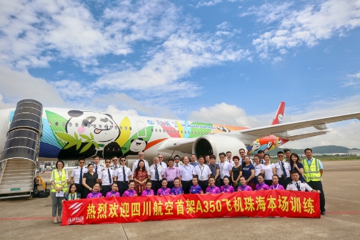 【香港商报网讯】记者陆绍龙报道:8月13日,四川航空股份有限公司引进的首架A350宽体飞机飞抵珠海金湾机场,开展训练飞行业务。据悉,空客A350是世界最新一代远程宽体飞机,拥有更大的空间感、更宽敞的乘坐体验和超静音的客舱环境。