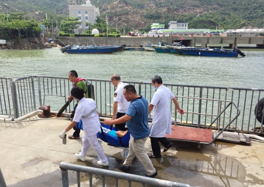 营救人员安全地将昏迷船员送到荷包岛进行救治。