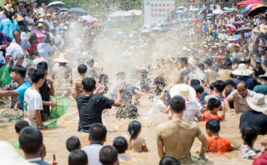 据悉,每年农历七月初四,马安村、根里村的苗族群众都会欢聚一堂,在闹鱼戏水中祈福丰年。