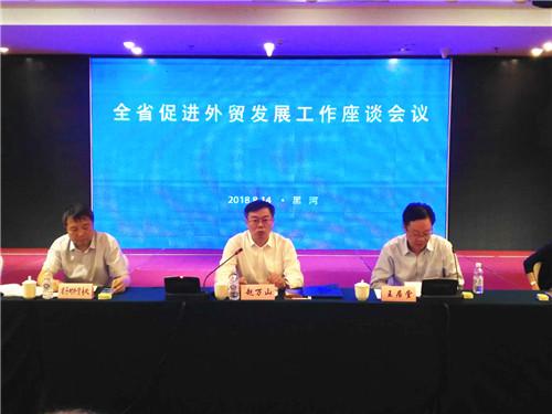 【香港商报网讯】为落实黑龙江省委、省政府上半年经济形势分析会议精神,8月14日,全省促进外贸发展工作座谈会在黑河市召开,研判当前黑龙江省对外贸易形势,分析评估中美贸易摩擦对黑龙江省对外贸易的影响,做好应对工作,部署黑龙江省参加首届中国国际进口博览会相关筹备工作,促进全省外贸出口回稳向好。