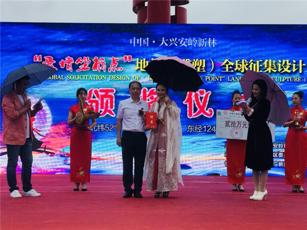 【香港商报网讯】实习记者袁金杉报道:8月17日9时13分14秒,伴随着绵绵细雨,带着七夕的深情与梦幻,感受爱情小镇新林浓浓的浪漫,中国·大兴安岭新林“爱情坐标点”地标(雕塑)全球征集设计颁奖仪式在新林区红旗广场举行。此次活动标志着历时两个多月的中国·大兴安岭新林“爱情坐标点”地标(雕塑)全球征集设计活动圆满收官。