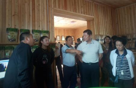 塔河县委书记周魁伟(左三)介绍管护区电商发展情况