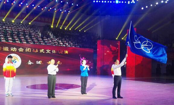 在大型文体表演《绿色临沧 奋进云南》后,举行了会旗交接仪式,临沧市市长张之政把省运会会旗交还给李玛琳,李玛琳将会旗授予云南省第十六届运动会承办方玉溪市市长张德华。下届省运会承办方玉溪市表演了文艺节目《相约玉溪》。