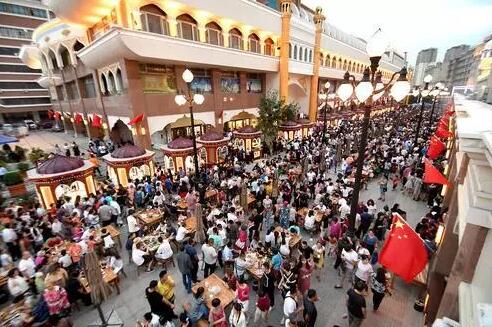 新疆大巴扎步行街A区·南起团结路囗,北到和平路口1巷,总长315米,为文创文旅和非遗项目,共有40个花车,其中30个为文创文旅产品,10个为非遗项目。B区,总长134米,在天池路国际大巴扎,定位为国际时尚区,主要表现民族特色产品,打造国际特色的小酒馆、咖啡厅,C区,在二道挢美食歌舞大剧院社区,是新疆特色美食街,共计30个小型档口和20个花车为游客提供非常好美食,有烤全羊、烤鱼、羊肉串等特色美食。以往国际大巴扎仅是民贸的商圈,现在打造文化旅游景区管理模式,引进软文化,每天从早上到下午都有歌舞,还有木卡姆演唱。