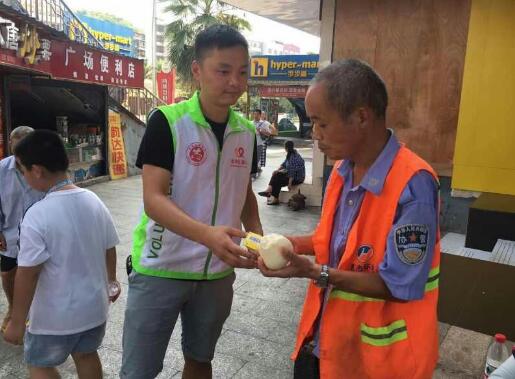 一名志愿者在现场表示:三伏天,分外炎热,叔叔阿姨们的工作真的很辛苦。看到他们收到慰问品时脸上荡漾的笑容,为自己成为一名志愿者感到很自豪。