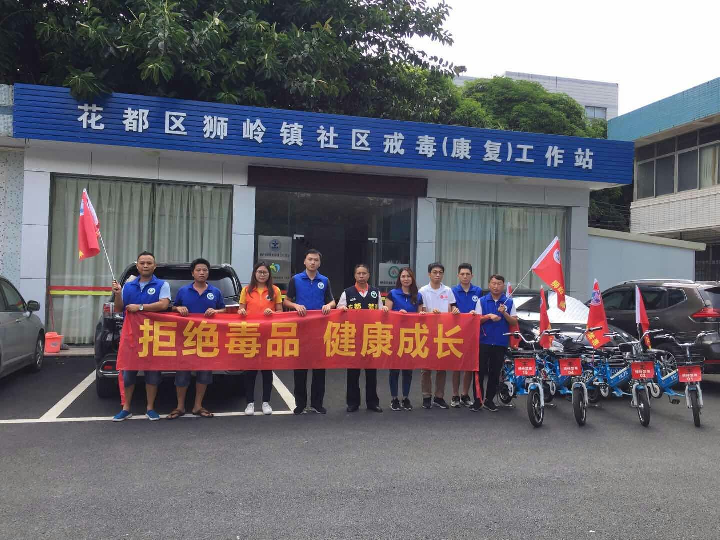 为倡导“健康人生 绿色无毒”的生活理念,以接地气的方式开展禁毒宣传活动,经过前期精心的筹备,8月21日,花都区狮岭镇举行“禁毒骑行队”成立仪式,成立了全区首支禁毒骑行队伍。仪式后,狮岭镇禁毒专职副书记任永成带领禁毒办工作人员作为首批骑行队队员踏上“禁毒号”,从狮岭镇社区戒毒(康复)工作站出发,分组分片穿梭于辖内的大街小巷,一边骑行一边宣传,通过发放禁毒环保袋、宣传小册子等向群众近距离讲解禁毒知识,并呼吁大家积极参与禁毒人民战争,得到了群众的一致好评,不少居民群众主动要求加入骑行队,积极为禁毒宣传贡献一份力量。
