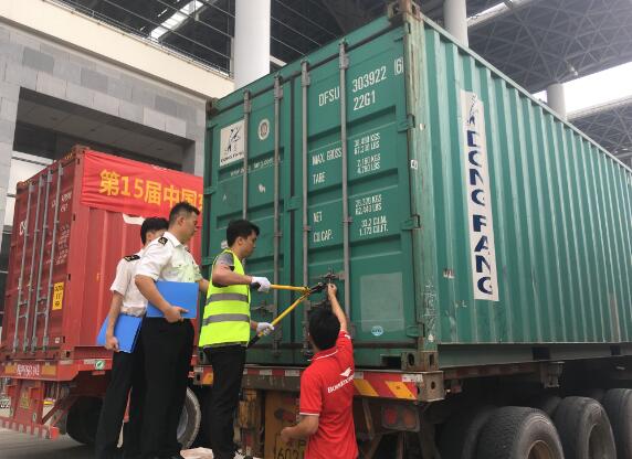 据悉,随着首批参展品入关,第15届东博会海关监管服务正式启动,也意味着本届东博会正式进入商品布展阶段。邕州海关副关长许军介绍,这批展品从钦州保税港入境,经南海高速运达南宁国际会展中心,展品共995件,重约18吨,货值人民币约35万,较去年增加了30%。许军称,根据中央和国家机关改革方案规定,今年4月,出入境检验检疫部门职责和人员正式划入海关,邕州海关将通过不断提高信息化监管水平,一如既往的做好东博会监管服务工作。