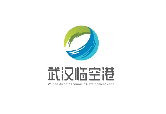 Logo呈圆形,造型像回旋的浪花,充满动感与灵气,以蓝、绿两色为主基调,象征着临空港的“绿色生态”与“科技浪潮”。