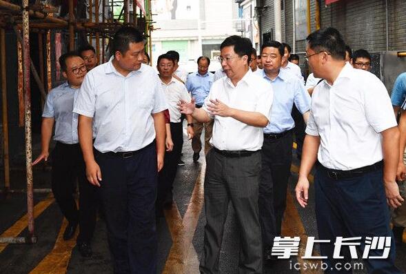 今日,省委常委、市委书记胡衡华赴天心区调研时,在西文庙坪仁美园巷片区,了解城市有机更新项目建设情况。长沙晚报记者 周柏平 摄