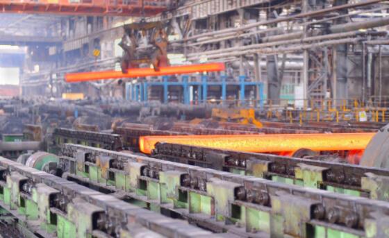 轧钢厂大棒生产线上机器轰隆,1200度高温的钢锭正在通过一道道工序被加工成一条条方坯,然后再根据需要加工成各种型号的钢材。